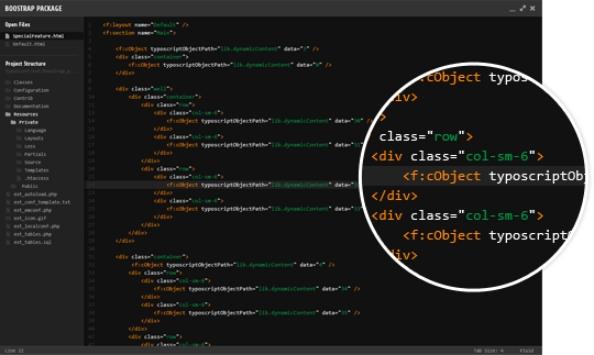 Fluid's approach to creating templates emphasizes simplicity, flexibility, extensibility, and easy of use. The syntax is XML-based and can be extended in any Web IDE. With its ViewHelpers, Fluid can be extended by powerful functionality that fits custom web project needs.